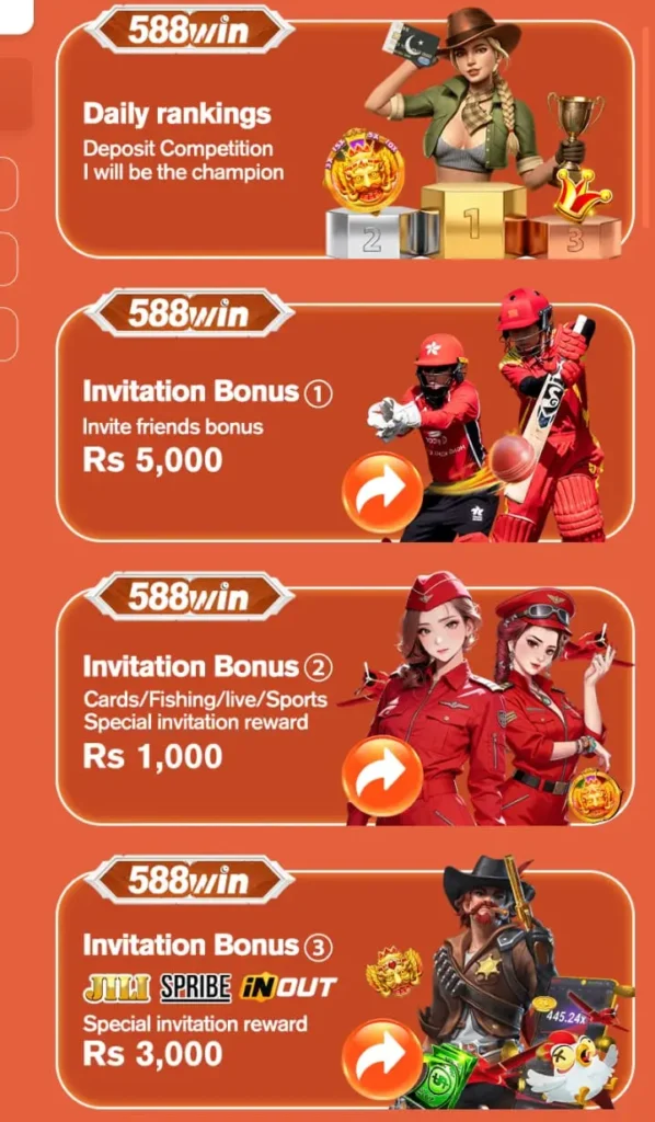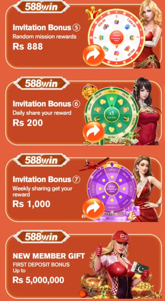 One of the main attractions of the 588WIN app is its bonus system, which includes: